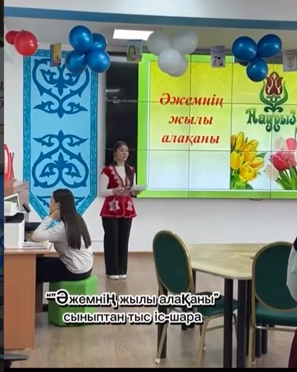 8 наурыз халықаралық әйелдер мерекесіне орай, 10 «Ә», 11»А» сынып оқушылары «Әжемнің жылы алақаны» тақырыбында сыныптан тыс кездесу өткізді. Шараға аяулы ана, ардақты әжелер Молдахметова Забира және Егізбаева Динегул ханымдар қатысып, өмірлік тәжірибелерімен бөлісіп, жас ұрпаққа тәлім-тәрбиесі мол ақыл-кеңестерін айтты