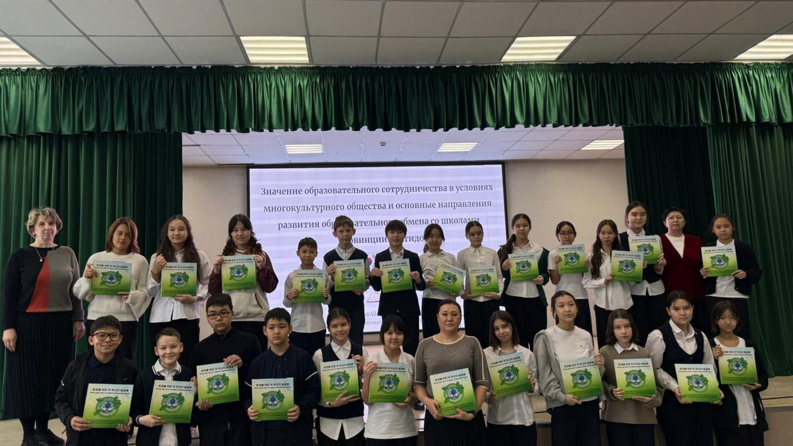 «С сентября по декабрь 2025 года в нашей школе был реализован международный проект «Проект глобального сообщества: поиск решений экологических проблем», в котором приняли участие: 25 учеников начальной школы Ансан Со (Южная Корея) и ученики 6 «И» класса. 12 января состоялся Международный форум в Республике Корея на котором выступила директор школы А.Чужетова. Итогом этого проекта стала книга о совместной работе, которую передали ученики Кореи ученикам 6 «И» класса»